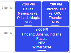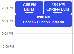 across the top and the times down the side. In Week view, the locations go away and instead you see a full week of games.